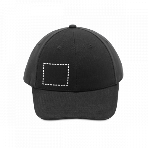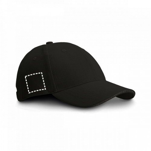 Cappellino tipo" sandwich" 100% cotone spazzolato con 6 pannelli e fori ricamati per la ventilazione (260 g/m²). Regolabile con fibbia in metallo. Misura: 580 mm