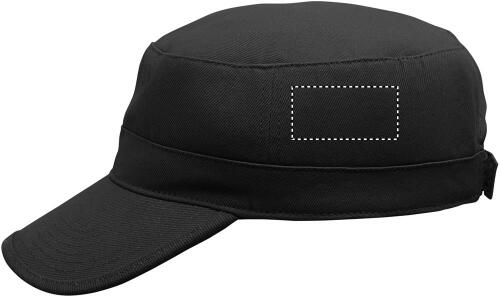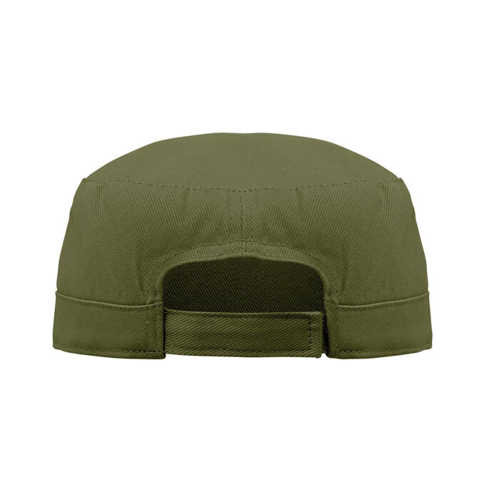 Berretto militare in cotone spazzolato da 260gr/m² con fascia antisudore in poliestere e chiusura a ganci regolabile.