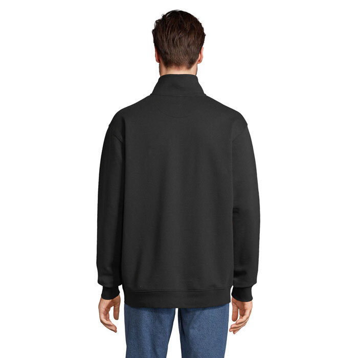 SOL'S CONRAD, Felpa con colletto alto con 1/4 di zip 80% Cotone - 20% Poliestere riciclato certificato Grs Maniche incastonate, tagliate e cucite, polsini e fondo a coste 1X1, colletto alto con 1/4 di zip, cerniera in plastica iniettata in tono con tirazip in metallo in tono, mezzaluna in jersey e nastro per il collo all'interno del colletto (1) Grigio Melange: 73% Cotone / 20% Poliestere riciclato / 7% Viscosa