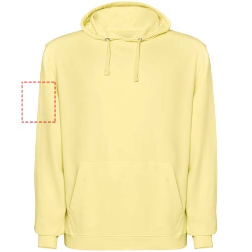 Felpa con cappuccio unisex con finitura con lavaggio acido. Polsini e vita a costine 2x1. Cappuccio foderato in jersey singolo tono su tono, con lacci piatti abbinati. Copertura tono su tono sulle cuciture sul collo. Tasca a canguro.