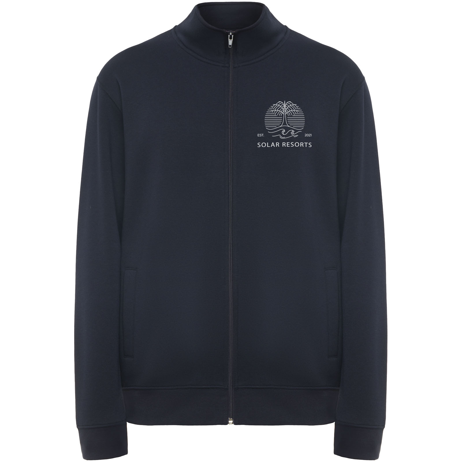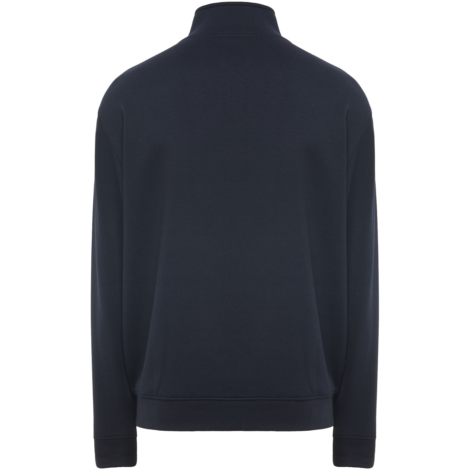 Maglia a collo alto con cerniera abbinata. Colletto interno abbinato con copri cuciture rinforzate. Polsini e giro vita in tessuto a costine 1x1. Etichetta rimovibile. Il modello è alto 185 cm ed indossa una taglia L, la modella è alta 168 cm ed indossa una taglia M.