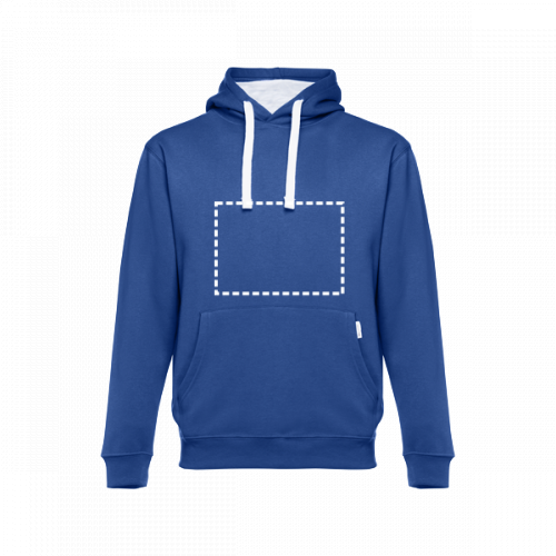 Felpa (unisex) in 50% cotone e 50% poliestere (320 g/m²) con interno spazzolato. Polsini e vita a costine 1x1, tasca a marsupio e cappuccio con cordoncini regolabili e con colore contrastato. Taglie: S, M, L, XL, XXL