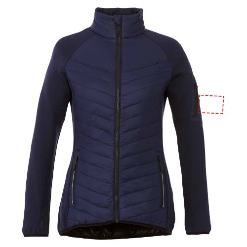 La giacca termica ibrida da donna Banff è una fusione perfetta di stile e prestazioni. L'aletta interna assicura che il vento non passi attraverso la giacca, mentre l'orlo posteriore sceso aggiunge un tocco di copertura in più per un maggiore calore. L'elastico in colore contrastante aggiunge un accento di stile e garantisce una vestibilità sicura. Il tessuto opaco della giacca 380T ha una finitura idrorepellente e impermeabile ed è realizzato in nylon (38 g/m2). Il tessuto a contrasto è una maglia interlock in poliestere ed elastan (245 g/m2), che aggiunge flessibilità e comfort. L'isolamento in finta piuma di poliestere offre un calore leggero, perfetto per le giornate fredde. Questa giacca è progettata con una forma aderente per un look femminile.