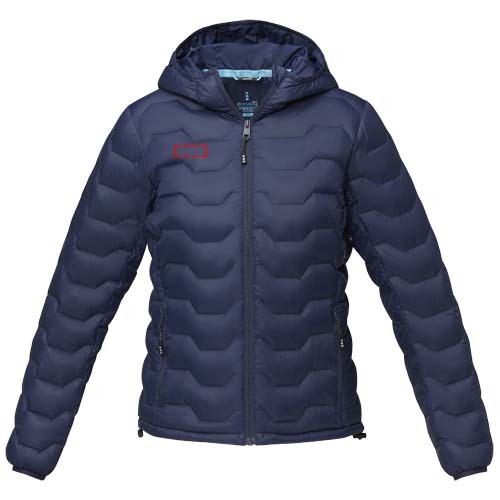 La giacca termica riciclata GRS da donna di Petalite è una scelta elegante per chi è sempre in cerca di nuove avventure. Realizzata con precisione e cura, questa giacca è completamente certificata GRS e rappresenta un'aggiunta più responsabile al tuo guardaroba. Progettata per garantire comfort e calore, il motivo trapuntato a nido d'ape presenta un design moderno e migliora l'isolamento, mentre il tessuto in nylon riciclato dull cire 380T, certificato GRS, garantisce durabilità e resistenza agli agenti atmosferici. Anche le rifiniture e gli accessori, comprese le cerniere, provengono da materiali riciclati. Dotata di caratteristiche pratiche, la giacca Petalite dispone di tasche anteriori con cerniera e di una tasca interna in basso a sinistra per riporre i tuoi oggetti in modo sicuro. L'aletta interna con protezione per il mento ti protegge dalle intemperie, mentre la coulisse elastica con cordino regolabile nell'orlo inferiore consente di personalizzare la vestibilità. L'elastico sul cappuccio garantisce una maggiore protezione contro i venti freddi. La piuma riciclata certificata RDS offre calore senza compromettere gli standard etici. Con la certificazione GRS che garantisce una catena di approvvigionamento certificata al 100%, questo capo rappresenta davvero una scelta più responsabile. Questa giacca è progettata con una forma aderente per un look femminile.