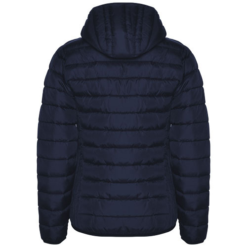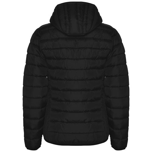 Giacca da donna trapuntata morbida al tatto e cappuccio regolabile. Cerniere invertite con protezione per il mento abbinata. Due tasche anteriori con cerniera. Orlo elasticizzato abbinato sui polsini, sull’orlo e sul cappuccio. Fodera interna a contrasto. Indumento leggero e ripiegabile. Idrorepellente. Modello anti-vento.