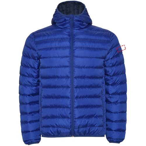 Giacca da uomo trapuntata morbida al tatto e cappuccio regolabile. Cerniere invertite con protezione per il mento abbinata. Due tasche anteriori con cerniera. Orlo elasticizzato abbinato sui polsini, sull’orlo e sul cappuccio. Fodera interna a contrasto. Inclusa borsa per riporta e trasportarla. Indumento leggero e ripiegabile. Idrorepellente. Modello anti-vento.