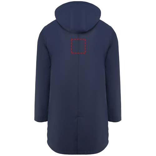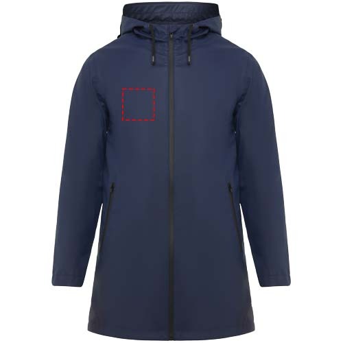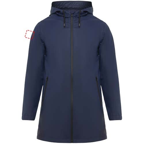 Giacca impermeabile. Cappuccio con visiera. Cerniere e cuciture termosaldate. Dettagli a contrasto di colore nero. Due tasche laterali con cerniera. Fessure sul retro del cappuccio. Etichetta rimovibile. Impermeabile. Il modello è alto 185 cm ed indossa una taglia M.