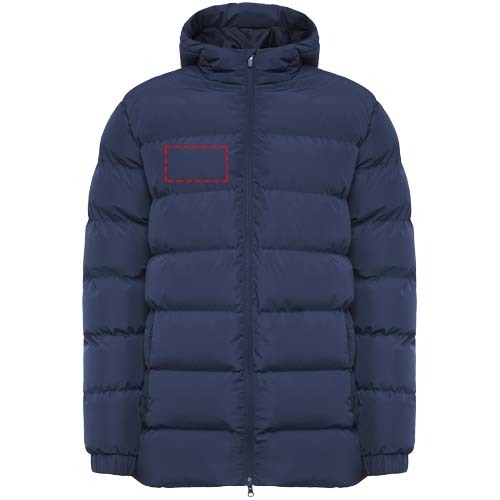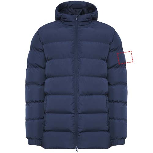 Parka sportivo imbottito. Cappuccio con visiera. Cerniera frontale con tiretto abbinato e protezione per il mento. Polsini elasticizzati. Due tasche laterali con cerniera. Tasca interna sul petto a sinistra. Accesso interno per la rielaborazione. Etichetta removibile. Impermeabile. Anti-vento.