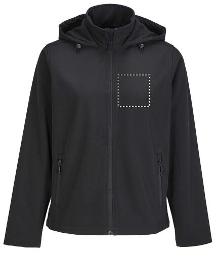 SOL'S RACE HOODED WOMEN, giacca softshell da donna con cappuccio, 100% poliestere riciclato Fodera in pile polare: 100% poliestere riciclato 2 strati, Chiusura frontale e tasche laterali con cerniera in nylon nero Tiretti con cerniera nera Cappuccio con coulisse Leggermente più lungo sul retro. Per la corrispondenza delle taglie, consultare la tabella delle taglie nella sezione documentazione del prodotto.