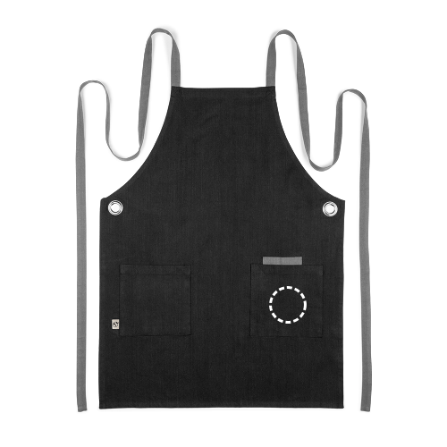 Grembiule in cotone (80% riciclato) e poliestere (20% riciclato) (220 g/m²). Dotato di 3 tasche multifunzionali, ideali per riporre un cellulare o un tablet di piccole dimensioni per la registrazione degli ordini. Le cinghie incrociate sulla schiena conferiscono un design audace e consentono una vestibilità comoda e personalizzabile