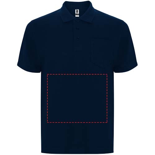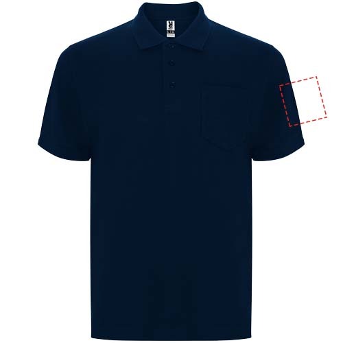 Polo a maniche corte con tasca sul petto a sinistra. Colletto e polsini in tessuto a coste 1x1 con dettaglio. Chiusura con 3 bottoni. Cuciture coperte e rinforzate nel colletto. Etichetta rimovibile. Trattamento antipelucchi.