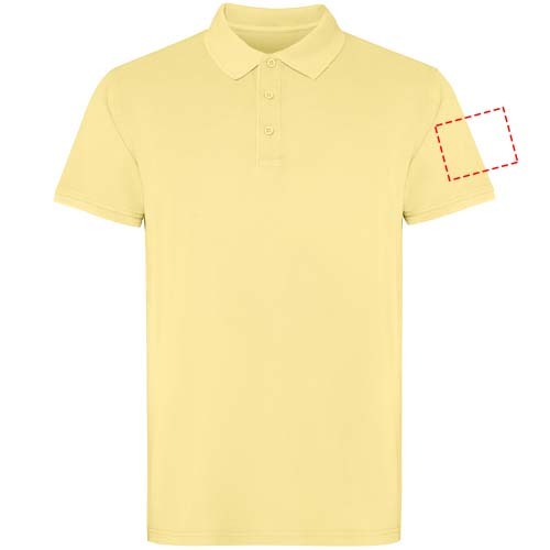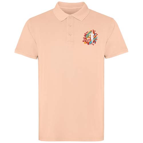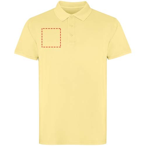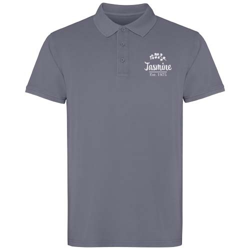 Polo unisex a maniche corte. Finitura con lavaggio acido. Colletto e polsini a costine 1x1, con aperture laterali. Copertura tono su tono sulle cuciture. Allacciatura con tre bottoni.