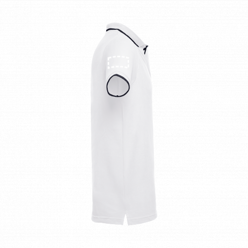 Polo bicolore a maniche corte da uomo in piqué 100% cotone cardato (210 g/m²).Contrasto bicolore su girocollo, manica e abbottonatura. Girocollo e maniche a costine. Abbottonatura rinforzata con 3 bottoni a colore contrastante (bottone di riserva cucito all'interno). Vestibilità aderente con spacchetti laterali. Taglie: S, M, L, XL, XXL