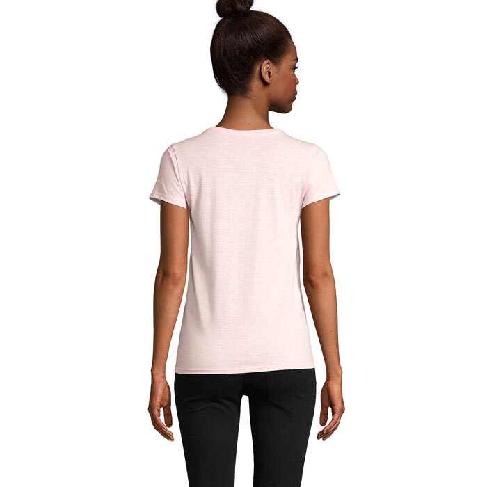 SOL'S CRUSADER WOMEN, T-shirt donna in jersey aderente con scollo rotondo, 100% cotone da coltivazione biologica, finitura naturale per una sensazione più morbida e liscia Jersey 150, colletto a coste 100% cotone, scollo rotondo, nastro sul collo, taglio aderente, tubolare, (1) Verde chiaro: 60 % Cotone organico / 40 % Poliestere riciclato, (2) Rosa erica : 60 % Cotone organico / 40 % Poliestere riciclato, (3) Beige erica : 60 % Cotone organico / 40 % Poliestere riciclato, (4) Cenere : 98 % Cotone organico / 2 % Viscosa, (5) Grigio melange : 85 % Cotone organico / 15 % Viscosa. Per la corrispondenza delle taglie, consultare la tabella delle taglie nella sezione della documentazione del prodotto.