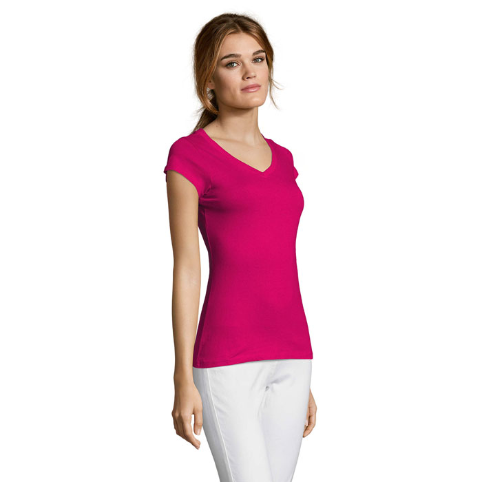SOL'S MOON Women, Tshirt 150g/m², La t-shirt di riferimento con scollo a 'V' profondo, in versione femminile. Punto vita sfiancato, ideale per l'universo della moda. 100% cotone semipettinato Ringspun, nastro di rinforzo sul collo, maniche corte, punto vita sfiancato, Scollo a «V» con bordo a costina con elastan, .