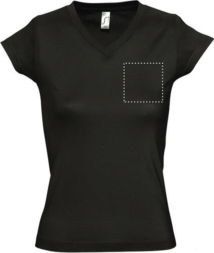SOL'S MOON Women, Tshirt 150g/m², La t-shirt di riferimento con scollo a 'V' profondo, in versione femminile. Punto vita sfiancato, ideale per l'universo della moda. 100% cotone semipettinato Ringspun, nastro di rinforzo sul collo, maniche corte, punto vita sfiancato, Scollo a «V» con bordo a costina con elastan, .