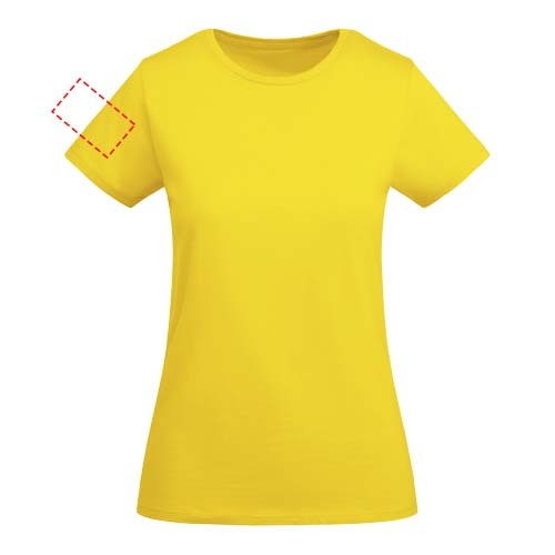 T-shirt aderente a maniche corte da donna in cotone biologico. Girocollo a costine 1x1. Copri cuciture rinforzate sul colletto. Cuciture laterali. Etichetta rimovibile.