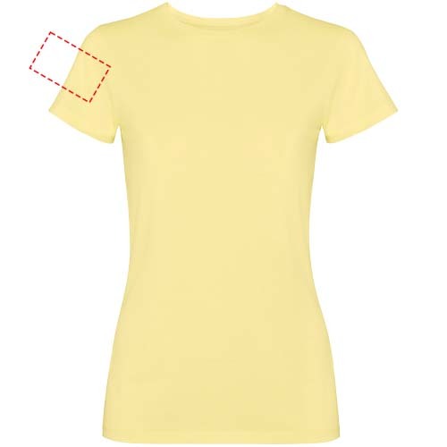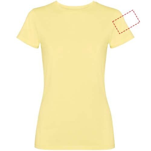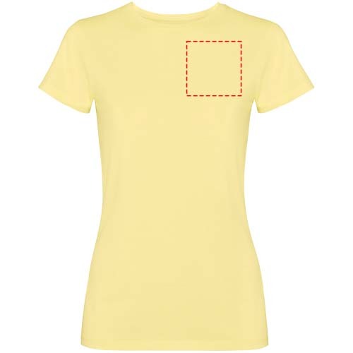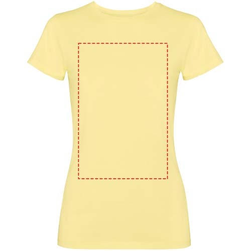 T-shirt a maniche corte da donna. Finitura con lavaggio acido. Girocollo a costine 1x1 e cuciture laterali. Copertura tono su tono sulle cuciture del collo.