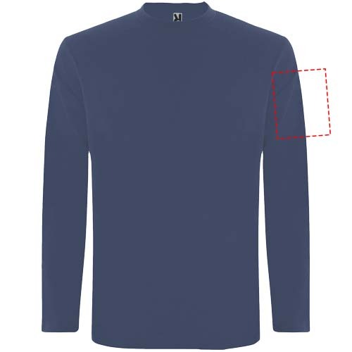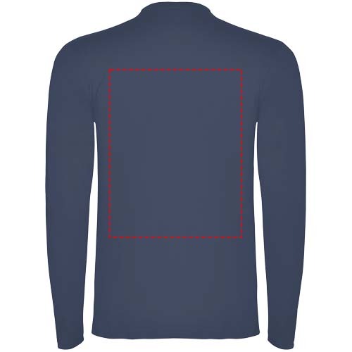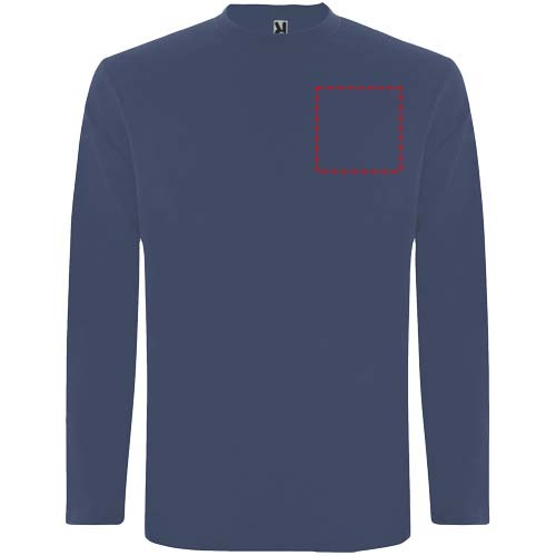 T-shirt a maniche lunghe in tessuto tubolare e girocollo a 4 strati. Copri cuciture rinforzate sul colletto e sulle spalle. Senza polsini. Etichetta rimovibile. Design tubolare per le taglie da adulti e cuciture laterali per le taglie da bambino. Il modello è alto 185 cm ed indossa una taglia L.
