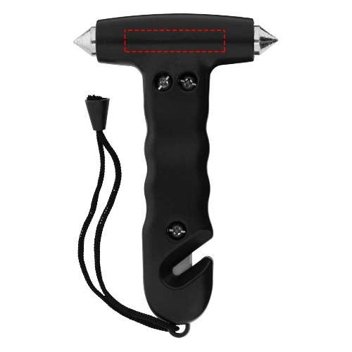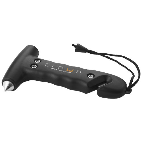 Martelletto d'emergenza con cinturino da polso e tagliacintura integrato nel manico. Con due punte rompivetro in acciaio temprato e il tagliacintura, è un utensile indispensabile in caso di incidenti.