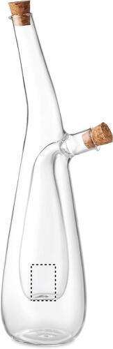 Bottiglia olio e aceto in vetro borosilicato con tappi di sughero. Capacità esterna: 300 ml. Capacità interna: 80 ml.