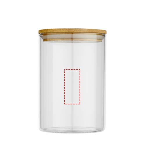 Contenitore per alimenti in vetro di medie dimensioni con coperchio in bambù. Unisce i vantaggi del vetro, un materiale sicuro e durevole, alle caratteristiche rinnovabili del bambù. Il contenitore di vetro (senza coperchio) è adatto per il microonde e lavabile in lavastoviglie. Confezionato all'interno di una scatola in carta kraft riciclata. Capacità: 550 ml.