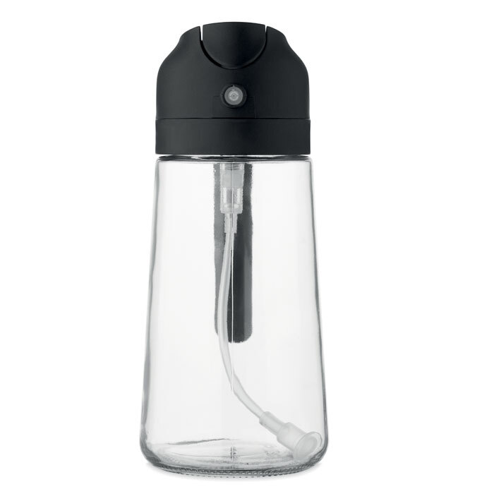 Dosatore e spruzzatore di olio in vetro 2 in 1 con coperchio in PP e cannuccia in PE. Capacità 450 ml.