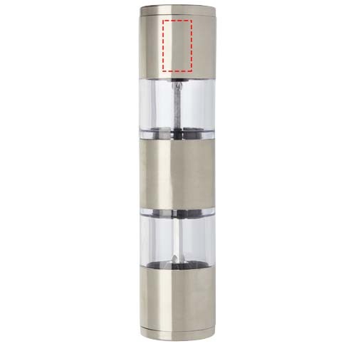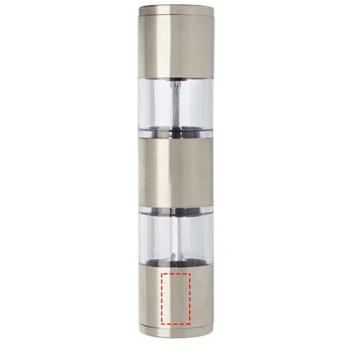 Macinino a doppia funzione con un'estremità per il sale e l'altra per il pepe. Pepe e sale non inclusi. Può contenere 50 g di sale e 36 g di pepe. Capacità: 80 ml.