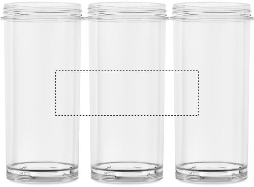 Offriamo anche un'opzione di stampa digitale a 360 su articoli cilindrici, come le nostre bottiglie di vetro, plastica o metallo. Questa tecnica è possibile solo su articoli senza manici.