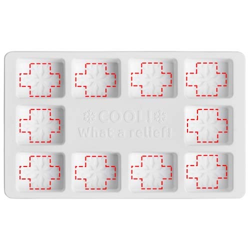 Il vassoio per cubetti di ghiaccio offre un modo originale per presentare il proprio logo o un messaggio su un prodotto molto utile. Il messaggio può essere aggiunto all'area centrale e/o alla base dello stampo di ogni cubetto tramite stampaggio a rilievo per una finitura tattile.