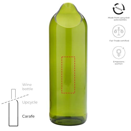 Caraffa d'acqua da 750 ml realizzata a mano con bottiglie di vino riciclate creativamente provenienti da Zanzibar, in Tanzania. Le bottiglie di vino vengono raccolte da hotel, ristoranti e bar, quindi vengono selezionate, pulite e tagliate in forme e dimensioni diverse. Consegnato in una confezione regalo.