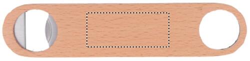 Apribottiglie in acciaio inossidabile con superficie in legno.