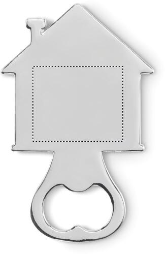 Apribottiglie in lega di zinco a forma di casa.