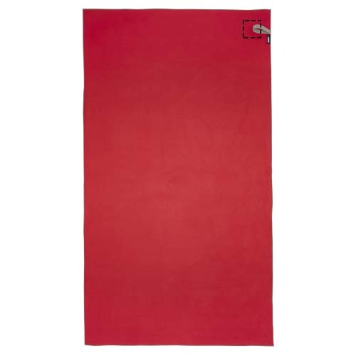 L'asciugamano sportivo Pieter assorbe moltissimo, è leggero, si asciuga rapidamente e presenta un tessuto resistente ed estremamente morbido. L'asciugamano può essere piegato e chiuso con l'elastico: assume così un formato ridotto, ideale da portare in palestra e in piscina, oppure durante le escursioni e in campeggio. L'asciugamano ha le dimensioni di 180 x 100 cm, è realizzato al 90% in poliestere riciclato certificato GRS ed al 10% in nylon. Può essere lavato in lavatrice a 40 °C. Fornito con una custodia (25 x 8,5 cm) in plastica PET riciclata, la cui superficie è ideale per la stampa di un logo.