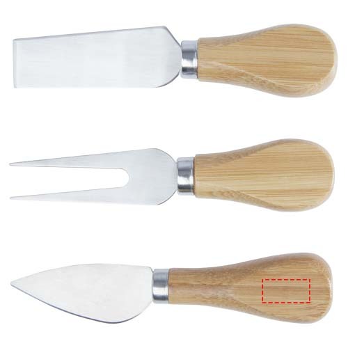 Set per il formaggio in bambù composto da un tagliere (30 x 7,6 cm), due coltelli (12,5 x 2,5 cm e 12,5 x 2,7 cm) e una forchetta (13,5 x 2,4 cm). Sul lato del tagliere è presente una striscia magnetica su cui possono essere attaccati gli utensili: potrai così servire il formaggio con stile. Il bambù utilizzato è ottenuto e prodotto in base a standard ecosostenibili.