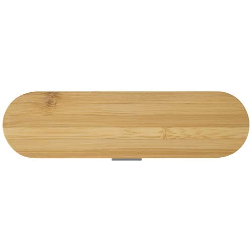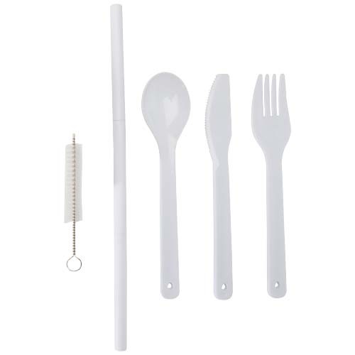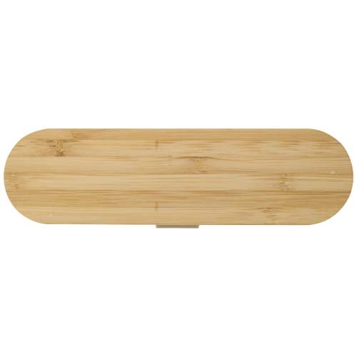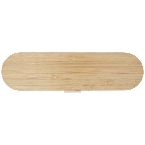 Un set di posate riutilizzabili con coperchio in bambù, che comprende forchetta, coltello, cucchiaio, cannuccia e scovolino per cannuccia, ideale per i pasti durante gli spostamenti. Compatto e facile da pulire, è perfetto per il pranzo, i viaggi o l'ufficio.