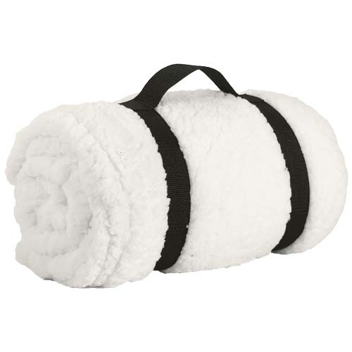 La coperta Poloris è realizzata in 100% poliestere riciclato (RPET) da 350 g/m² per un calore accogliente. Può essere facilmente arrotolata ed è dotata di una maniglia in poliestere nero, che la rende perfetta per rilassarsi a casa o in viaggio. Dimensione: 120 x 150 cm. Prodotto in Europa.