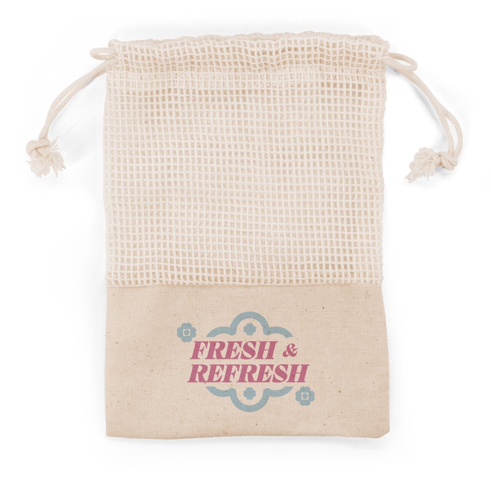 Set di 3 dischi detergenti per il viso lavabili e riutilizzabili, realizzati in un lussuoso mix di fibra di bambù (40%), poliestere (10%), cotone (47.5%) ed elastan (2.5%). Confezionati in una morbida bustina in cotone naturale, che può essere utilizzata anche per il lavaggio. Una scelta pratica e sostenibile per la routine di cura della pelle. 120 x 150 mm