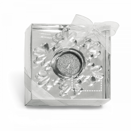 Candela su base in vetro a forma di fiocco di neve. Confezione regalo inclusa. Scatola: 123 x 123 x 30 mm