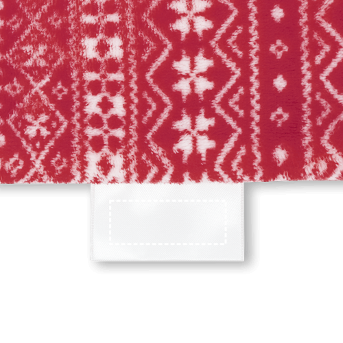 Coperta in pile (240 g/m²) con tocco vellutato e trattamento anti-pilling. La coperta presenta motivi natalizi ed è fornita in una sacca con coulisse dello stesso materiale. Etichetta di personalizzazione inclusa