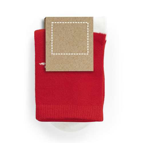 Calzini natalizi per bambini. Disponibili in varie taglie. Forniti con etichetta in kraft personalizzabile. Composizione: Cotone (78%), poliestere (17%) e elastam (5%). Taglie: S (23-26), M (27-30), L (31-34)