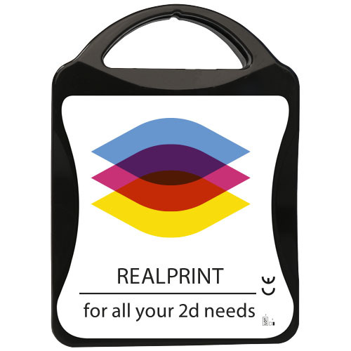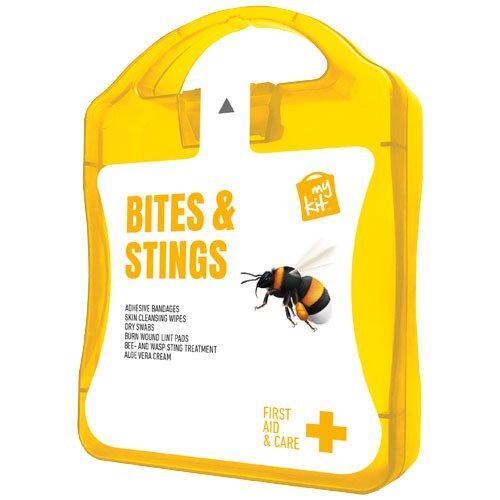 Il kit ideale per prevenire o curare le punture degli insetti in estate. Contenuto: 12 cerotti resistenti all'acqua, 4 salviettine disinfettanti, 2 garze sterili, 2 garze per ustioni, 1 cerotto per punture, 1 crema all'aloe vera. Tutti i prodotti contenuti nei MyKit rispettano le norme Europee vigenti. I prezzi includono stampa all-over fronte e retro.