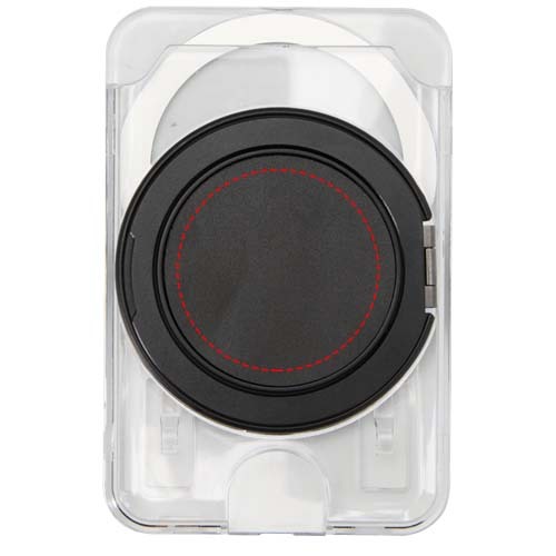 Un pratico set regalo caratterizzato da un blocco note formato A6 e un portafoglio MagSafe. Il blocco note è dotato di una copertina in plastica riciclata grigio scuro, 80 fogli a righe con carta da 70 g/m² di colore crema e una chiusura elastica nera. Il portafoglio MagSafe trasparente contiene una scheda e si attacca magneticamente all'iPhone 12 o ai modelli più recenti. È inoltre dotato di un anello metallico supplementare per l'utilizzo con altri telefoni. Entrambi gli articoli sono consegnati in un'elegante confezione regalo in cartone nero.