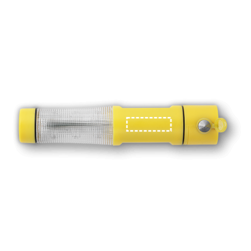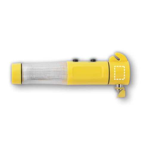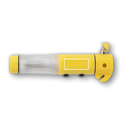 Martello con calamita, taglierino per cinture di sicurezza e torcia con 1 LED bianco e 3 LED rossi. Include 2 batterie AA. Fornito in confezione regalo. ø38 x 193 mm