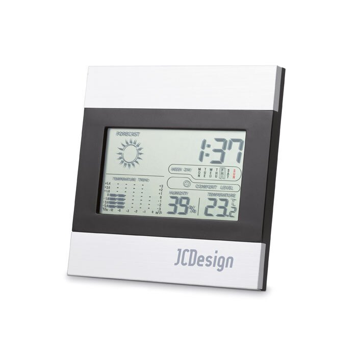 Stazione meteo con orologio, calendario, umidità e temperatura. 2 batterie AAA non incluse.