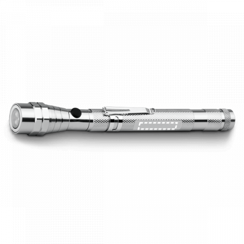 Torcia a LED in metallo, estensibile e flessibile, con 3 LED, magnete sulla punta e clip. Include 4 batterie al litio LR44. ø22 x 175 mm