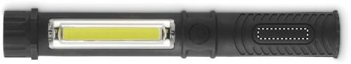 Torcia magnetica da lavoro a LED in ABS con clip e luce COB laterale. Dispone di una base magnetica per l'utilizzo a mani libere. Richiede 3 batterie AAA (non incluse).