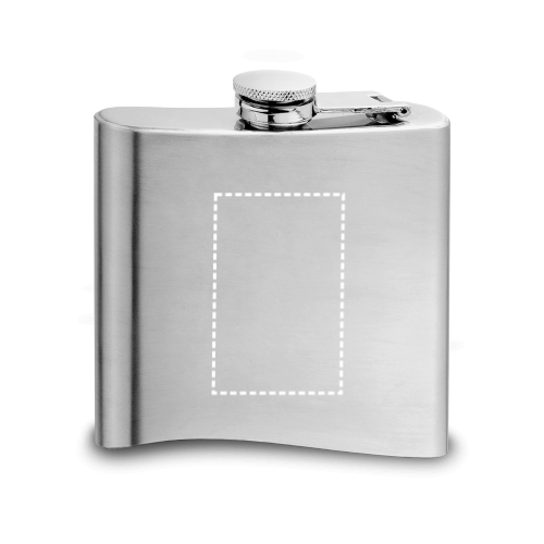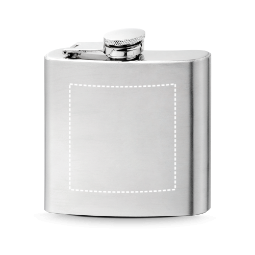 Bottiglia tascabile in acciaio inossidabile con una capacità fino a 180 mL. Fornito in confezione regalo. 100 x 110 x 25 mm