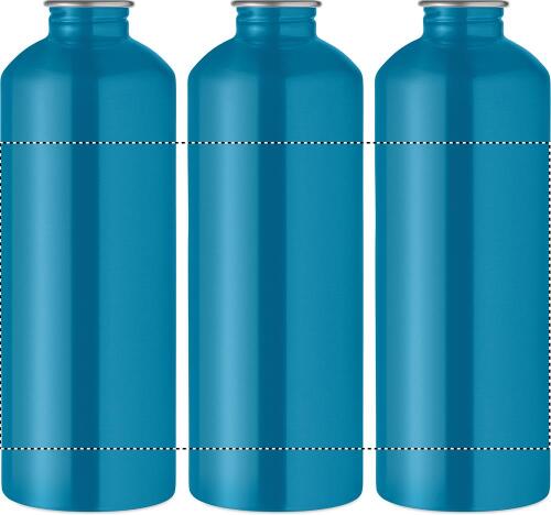 Bottiglia a singolo strato (90% acciaio inox riciclato e 10% acciaio inox) con coperchio in PP e moschettone. Capacità 1000 ml. Trattandosi di un singolo strato, fare attenzione a non scottarsi.