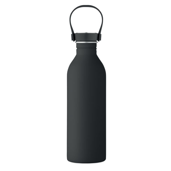 Bottiglia a singolo strato in acciaio inox riciclato al 90% e acciaio inox al 10% finitura in gomma. Coperchio in PP e SS, manico in silicone. 500 ml. Attenzione al surriscaldamento.